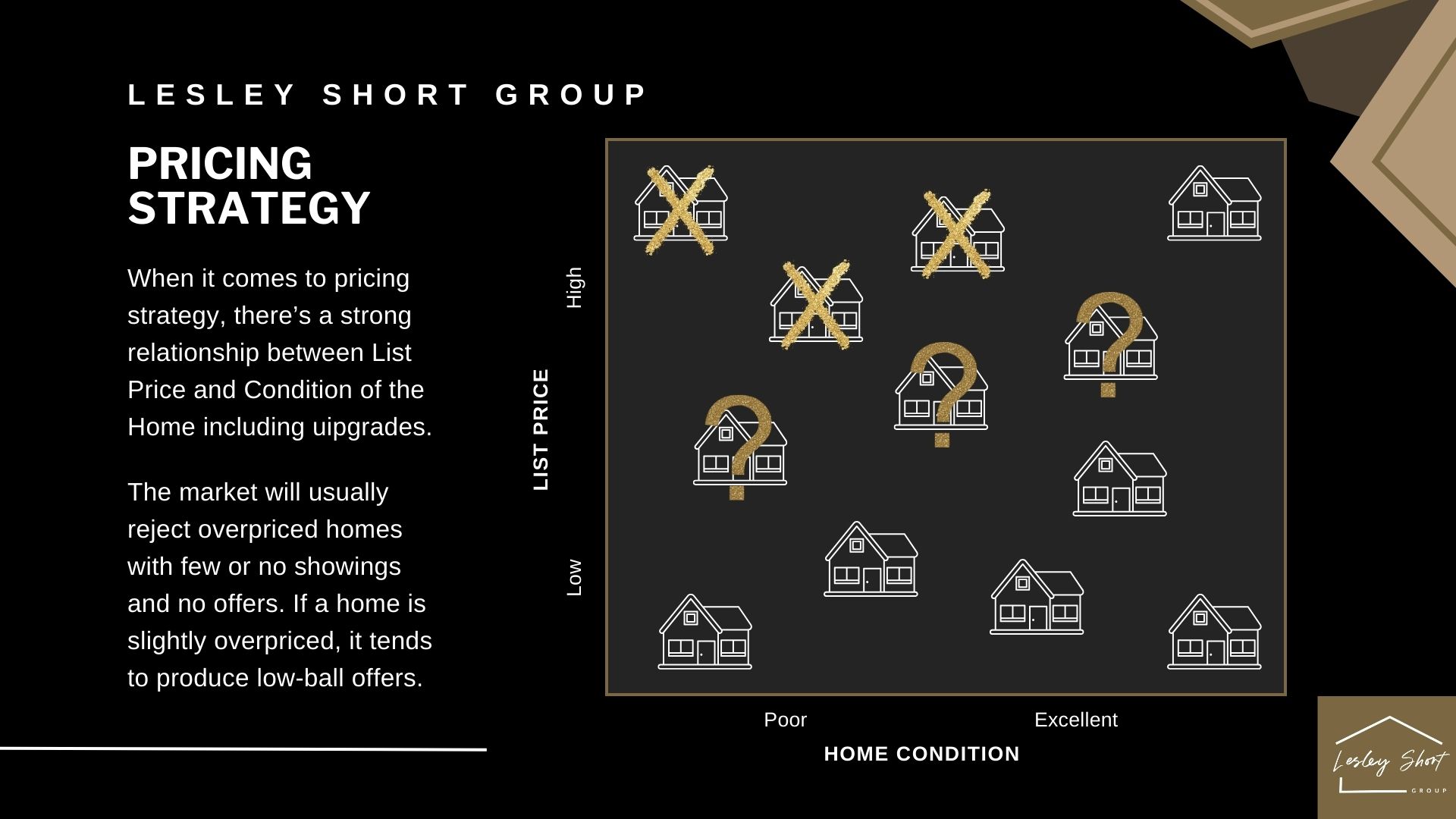 Developing the positioning requires three steps: Assessing the home’s condition and highlight features compared to other similar home for sale, connecting those features to the current trends in buyer preferences, crafting the narrative to connect to the distinctive value your home offers.