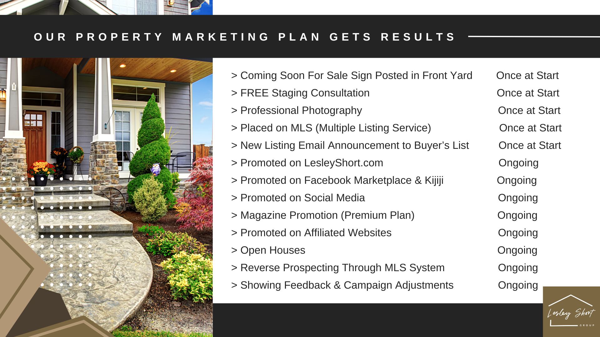 We offer 3 different customized listing service plans to accommodate your needs and expectations.